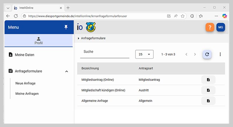 Vorteile: Sie erledigen die Anmeldung bequem online. Zudem haben Sie zukünftig die Möglichkeit, alle Ihre persönöichen Daten jederzeit einzusehen und online selber zu korrigieren bzw. zu ändern. Die Änderungen werden durch unsere Geschäftstelle korrigiert und freigegeben, bei Fragen oder Probleme melden wir uns bei Ihnen. Über das Portal könen ebenfalls sonstige Anfragen gestellt werden. Somit ist dies die einfachste und komfortabelste Art nicht nur für den Mitgliedsantrag, sondern auch für die sonstige Kommunikation mit unserer Geschäftsstelle.- Ablauf: Zunächst legen Sie sich selber einen Zugang an, das funktioniert ähnlich einfach wie bei einem Onlineshop (Benutzernamen und Passwort). Mit diesem Zugang haben Sie dann Zugriff auf das Portal und können sämtliche Funktionen nutzen.
